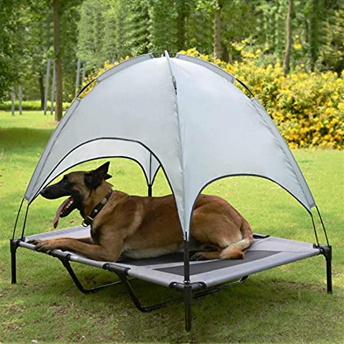 Specification: Verhoogde Hond Bed Met Afneembare Luifel, Verhoogde Hond Bed Cot Schaduwtent Ademend Weefsel Voor Binnen En Buiten Camping Beach (Color : Brown, Size : 92x76x18CM)
