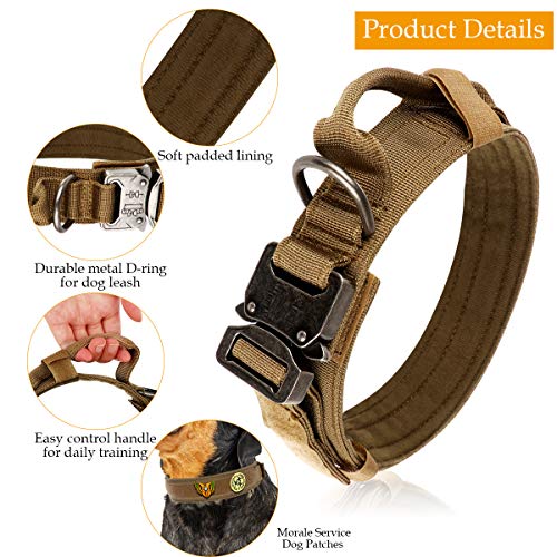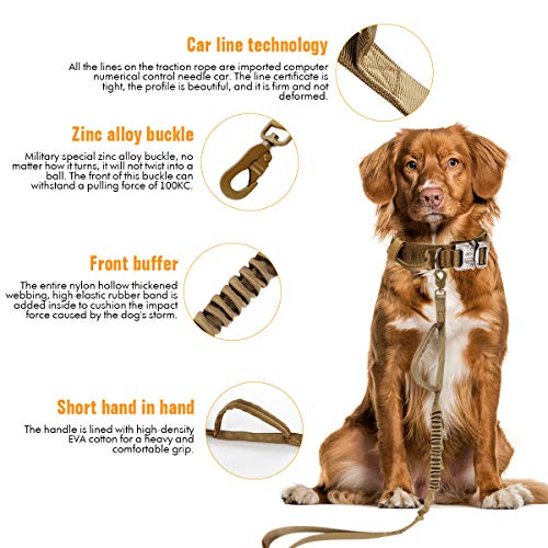 Specification: nobrand Tactische Hondenhalsband Nylon Verstelbare K9 Kraag Militaire Halsband Heavy Duty Metalen Gesp met Handvat en Tactische Bungee Hondenriem Nylon Verstelbare Militaire Hondenriem (L, Khaki)