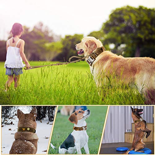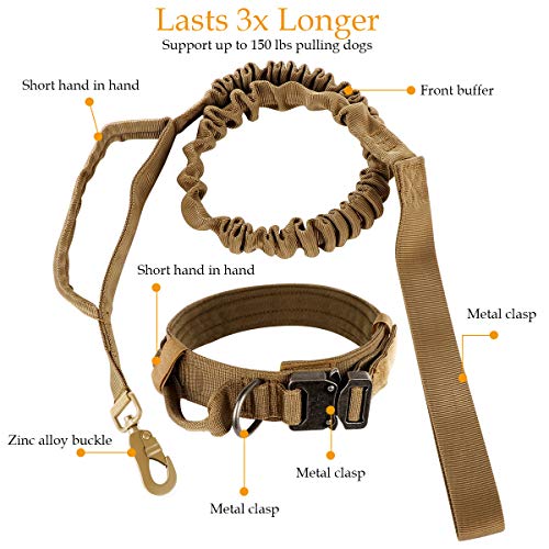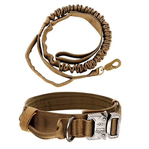 nobrand Tactische Hondenhalsband Nylon Verstelbare K9 Kraag Militaire Halsband Heavy Duty Metalen Gesp met Handvat en Tactische Bungee Hondenriem Nylon Verstelbare Militaire Hondenriem (L, Khaki)