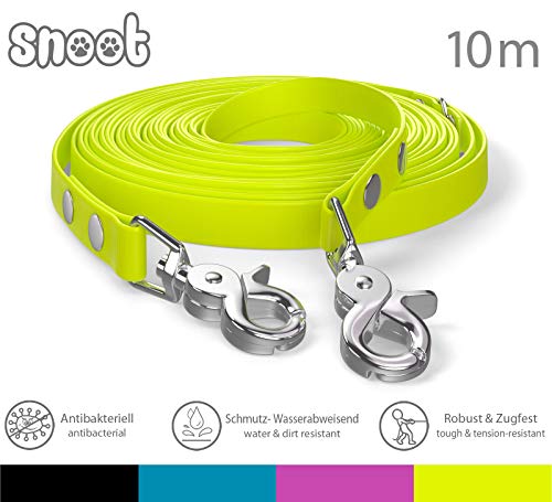 10m sleeplijn, hondenriem, 2 karabijnhaken & D-ring, neongeel, zeer stabiel, vuil- en waterafstotend
