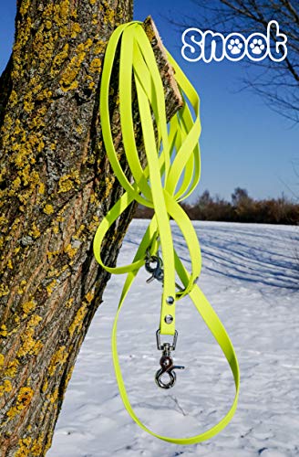Specification: 10m sleeplijn, hondenriem, 2 karabijnhaken & D-ring, neongeel, zeer stabiel, vuil- en waterafstotend