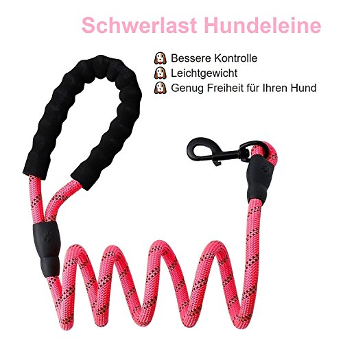 Specification: 5 ft sterke hondenriem met comfortabel gevoerde handgreep, sterke reflecterende naden van de trainingslijn voor veiligheid ‘s nachts, geschikt voor alle maten honden, roze