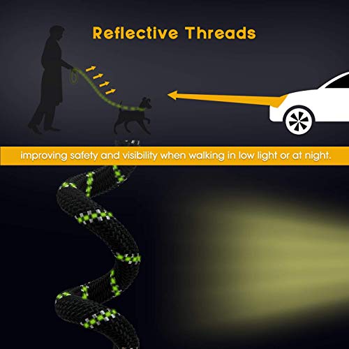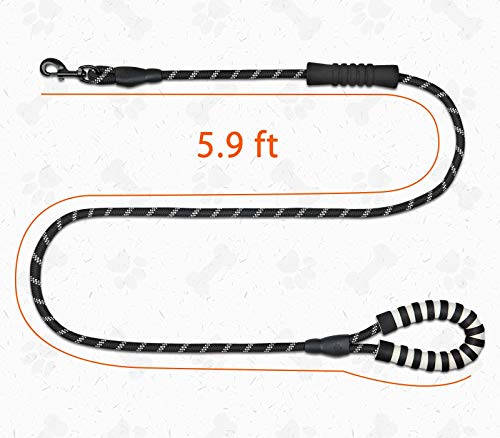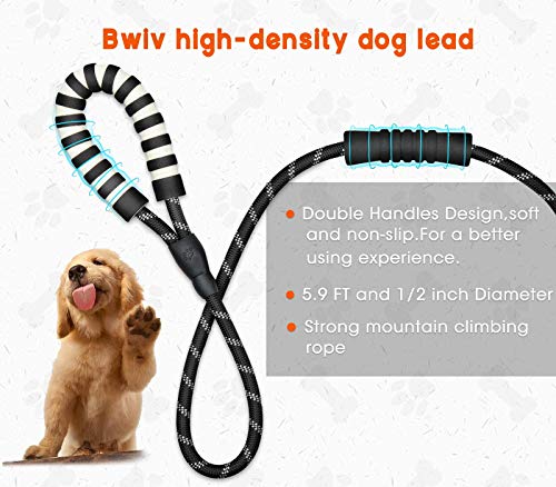 Bwiv 5.9FT hondenriem dubbele handgrepen sterk voor stoppen trekken met comfortabele duurzame antislip gewatteerde zachte handgreep hondenriem lichtgewicht reflecterende puppy lood zwart