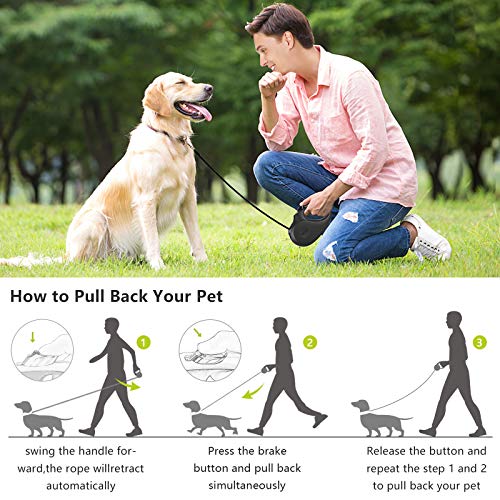 Specification: G.C Intrekbare hondenriem Uitschuifbare lange zware sterke hondenriem voor middelgrote grote honden, 5m/16ft sterke reflecterende nylon tape, 360 ° wirwar vrij, eenhandig rempauze slot