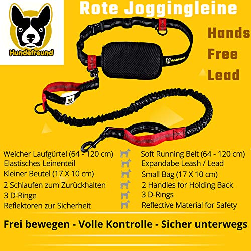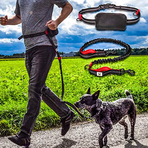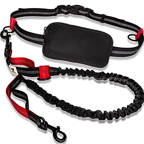 Specification: Handvrije hondenriem om te joggen, rood en zwart, elastisch en reflecterend van 120-170 cm, voor hardlopen, canicross, wandelen en wandelen