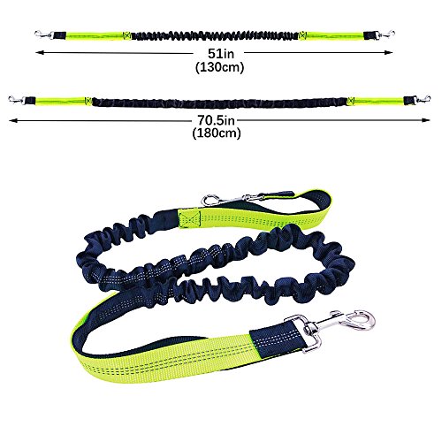 〓 Schokabsorberend en Extra Vrijheid: Uniek Bungee-ontwerp helpt schokken van snelle bewegingen van energieke en actieve honden te absorberen. Met een sterke trekkracht kan de lengte van de lijn worden verlengd van 130 tot 180cm, waardoor uw hond voldoende ruimte heeft om naast u te rennen.