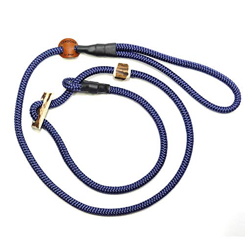 Specification: Retrieverlijn donker-blauw/Jachtlijn/Sliplijn/Moxonlijn Sporty | robuuste hondenriem gemaakt van touw met geïntegreerde halsbandje | 8mm | met echte herten hoorn stop