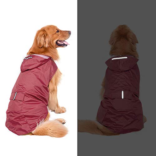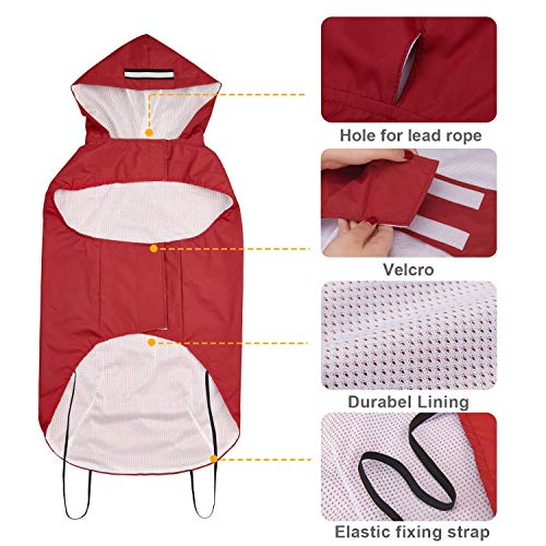 Specification: Bwiv Honden Regenjas Waterdichte Hondenjas Grote Gevoerde Ultralight Ademende Hondenjas Reflecterende Strepen Regenjas Honden Met Kap Rot