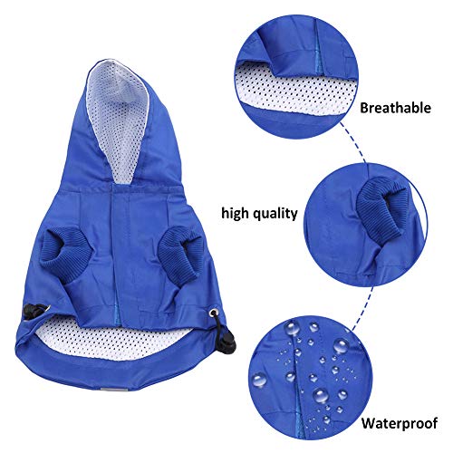Specification: WENTS Hondenregenjas met capuchon en veilige reflecterende, ultralichte ademende 100% waterdichte regenjas voor kleine, middelgrote rassen (blauw)