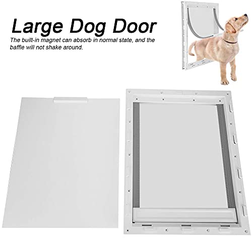 Groot hondenluik, installatie groot huisdierluik Eenvoudig hondenhek met ingebouwde magneet Speciaal in- en uitgang Huisdierluik voor grote en middelgrote huisdieren(Wit)
