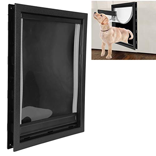 Groot huisdierluik, grote middelgrote verwijderbare installatiedeur voor binnenshuis buitendeuren, eenvoudige installatie voeding voor hondenluik Ingebouwde magneet(Zwart)
