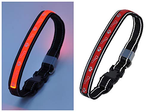 nanook LED hondenhalsband lichtgevende halsband voor honden – rood – reflecterend – oplichtend – 3 modi – USB oplaadbaar incl. kabel – maat M (37-53 cm x 2,5 cm)