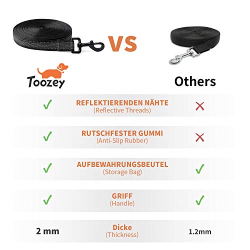 Specification: Toozey 5 m, 10 m, 15 m, 20 m, rubberen hondenriem met draagtas en draaggreep, antislip en robuust, voor kleine en grote honden