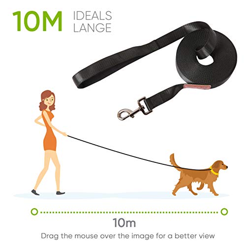 Specification: HEELE Hondenriem, Honden Trainingslijn met Gevoerd Handvat, Robuuste Karabijnhaak, Sleeplijn Gehoorzaamheid Training voor Honden, Zwart, 10m