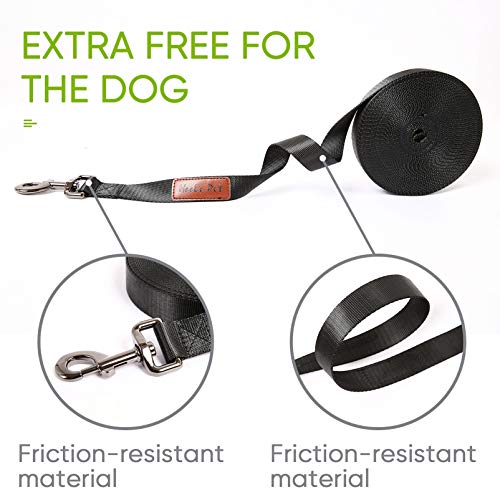 HEELE Hondenriem, Honden Trainingslijn met Gevoerd Handvat, Robuuste Karabijnhaak, Sleeplijn Gehoorzaamheid Training voor Honden, Zwart, 10m