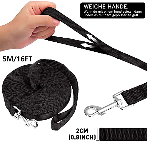 Hondentrainingslijn 5 m/16 ft hondenriem trainingslijn – hondentrainingstouw lang voor huisdier tracking training – lange lijn voor huisdier Recall Obedience (zwart)