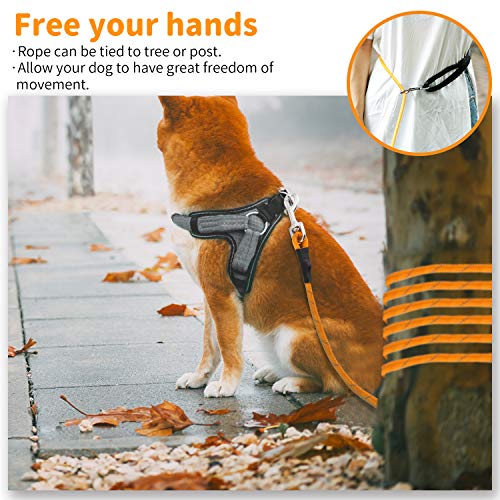 Dubbele karabijnhaak: de 2 karabijnhaken waarmee je je hond met een karabijnhaak kunt bevestigen en met de andere een lus om een boom of een andere kunt doen. Bevrijd je handen en laat je verlaten hond er met deze hondenriem uit zien.