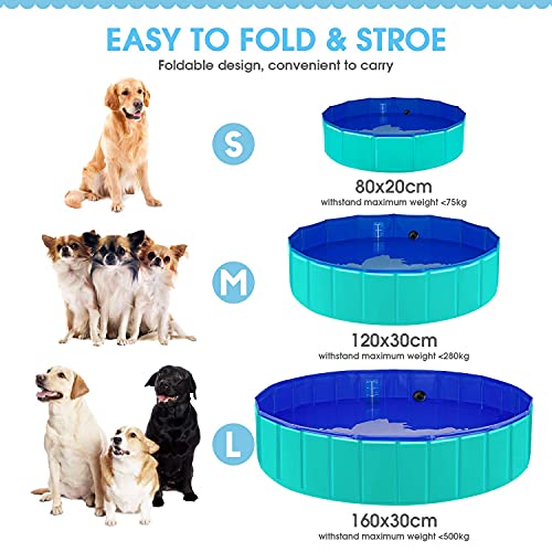 Forever Speed Hondenzwembad, Doggy zwembad, kattenzwembad, opvouwbaar zwembad, kinderbadkuip, milieuvriendelijk PVC, antislip, goed afgedichte huisdieren, cadeaus voor kinderen (3 maten), 160x30cm,Groen