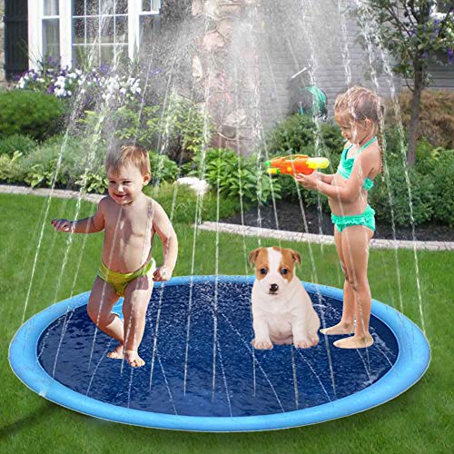 Ganquer 59 Inch Splash Sprinkler Pad voor honden Kids,Verdikte Duurzame Hond Bad Zwembad Badkuip Huisdier Zomer Outdoor Water Mat Speelgoed Fontein Speelmat
