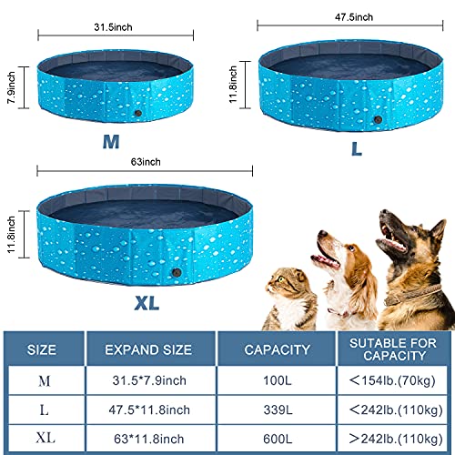 Specification: Hondenzwembad voor grote en kleine honden, 80 cm / 120 cm / 160 cm, opvouwbare hondenzwembaden, kinderbadjes voor kinderen en honden, hondenbad, binnen en buiten (120cm, Sea)