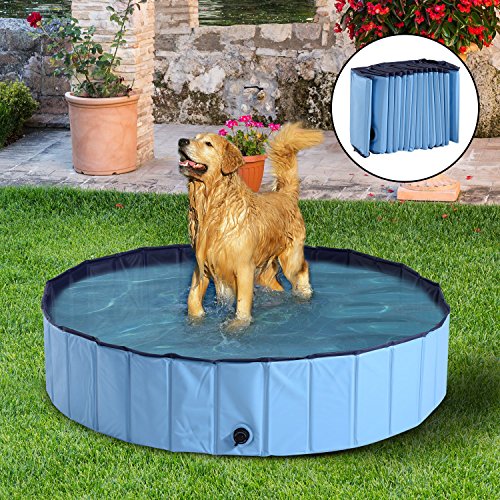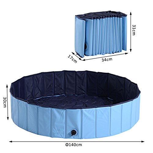 Specification: PawHut Hondenzwembad, kinderbadje, zwembad, hondenbad, pvc + hout, blauw, diameter 140 x 30 cm
