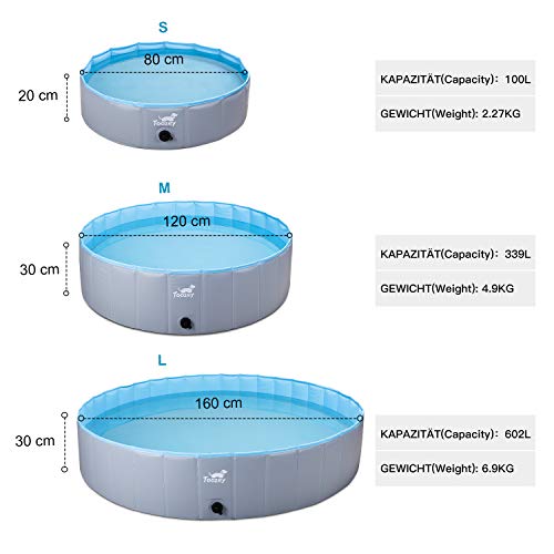 Specification: Toozey Hondenzwembad voor grote en kleine honden, 80 cm / 120 cm / 160 cm, opvouwbare hondenzwembaden, kinderbadje voor kinderen en honden, hondenbadkuip, 100% veilig en milieuvriendelijk