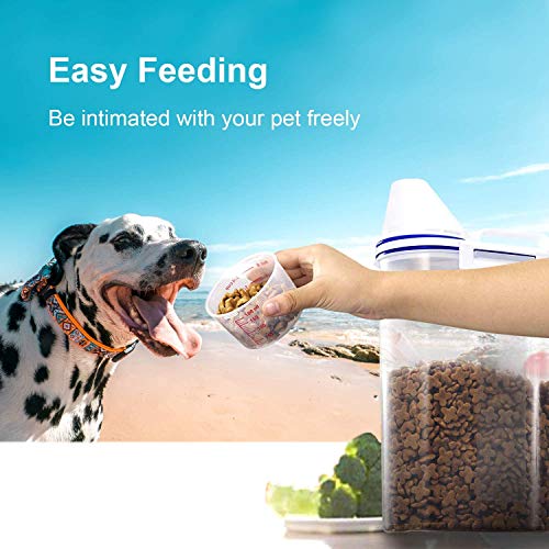 LINNHUE Voedselopslag Container voor kat hond luchtdichte huisdier voedsel container met maatbeker pour tuit BPA vrije plastic container